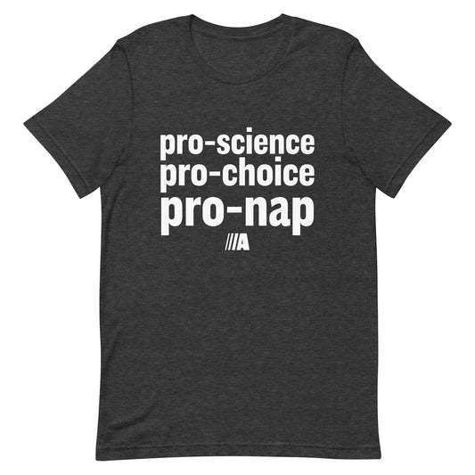Adult Pro-Science Pro-Choice Pro-Nap Unisex T-shirt